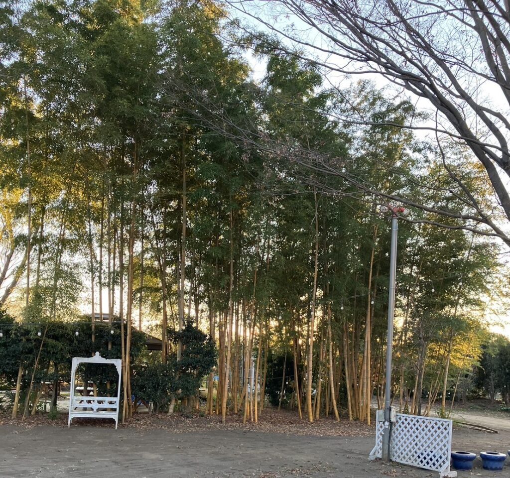 森の中にガーデンハウスが併設されているキャンプ場です